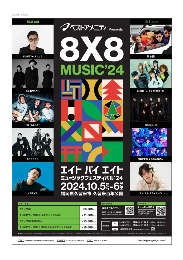 この久留米百年公園で、10月にグループ会社のイベント、『8×8 ミュージックフェスティバル2024』が、5日(土)、6日(日)の2日間開催されます♪
