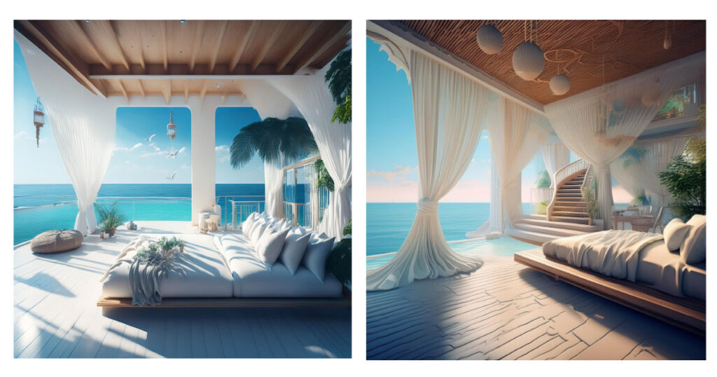 『AIが作った夢の部屋シリーズ*~海に浮かぶ部屋・寝室編~』