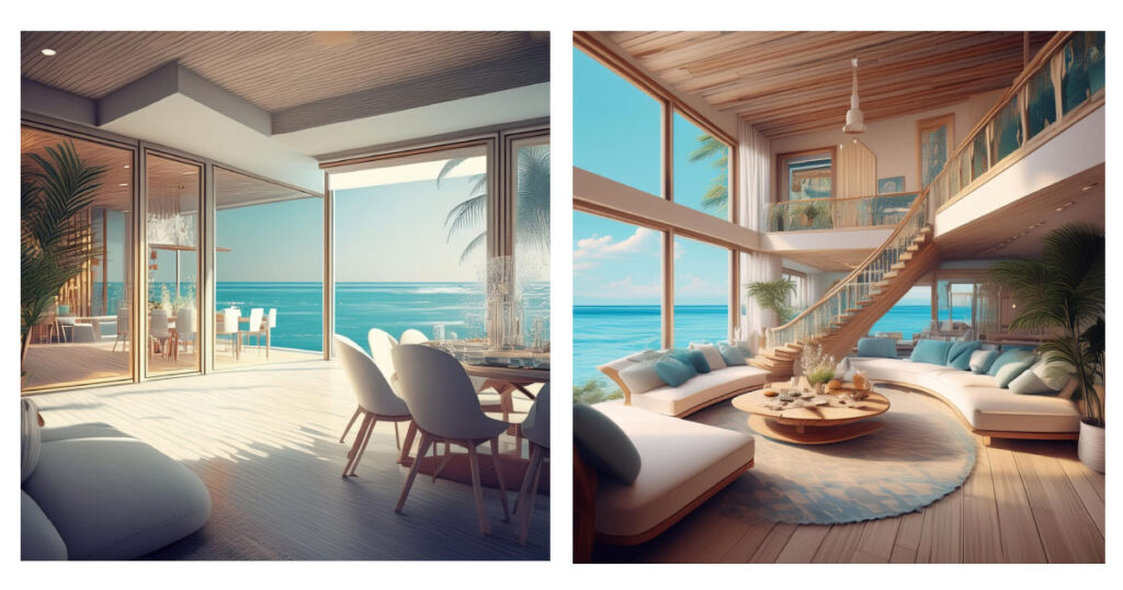 『AIが作った夢の部屋シリーズ*~海に浮かぶ部屋・リビングダイニング編~』