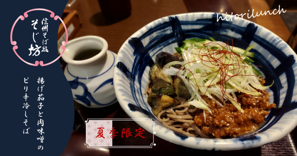 ~今日のひとりランチ*そじ坊の『揚げ茄子と肉味噌のピリ辛冷しそば』~