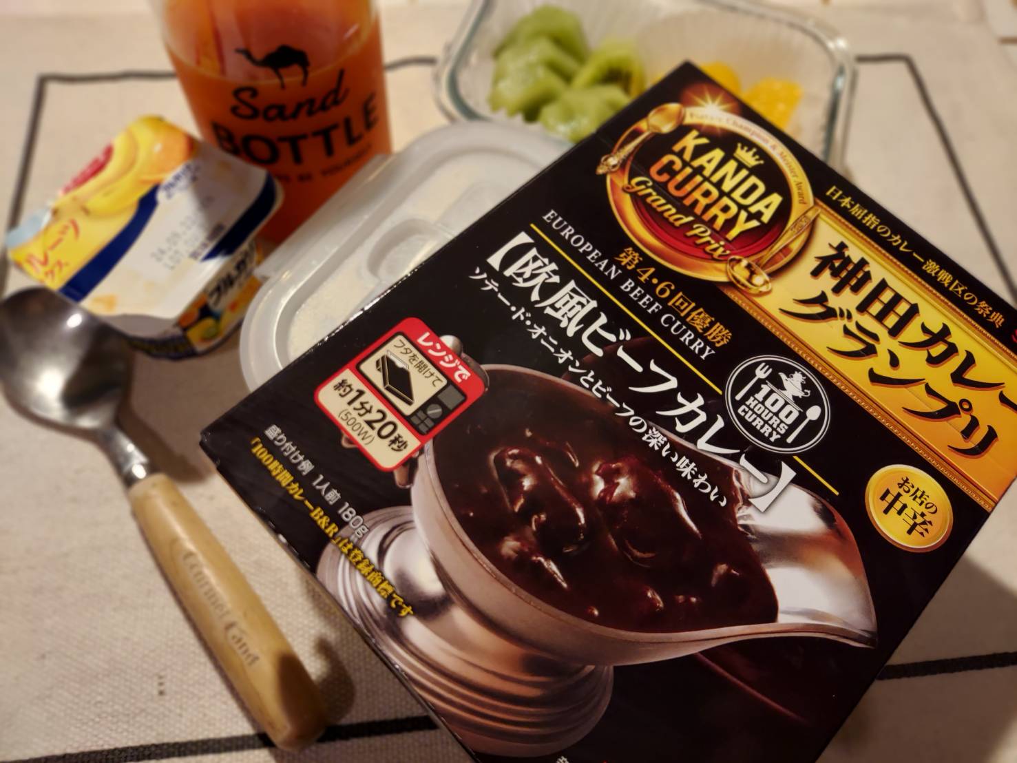 こちらのレトルトカレーは箱ごとレンジでチンできるタイプなので、かなり便利です。