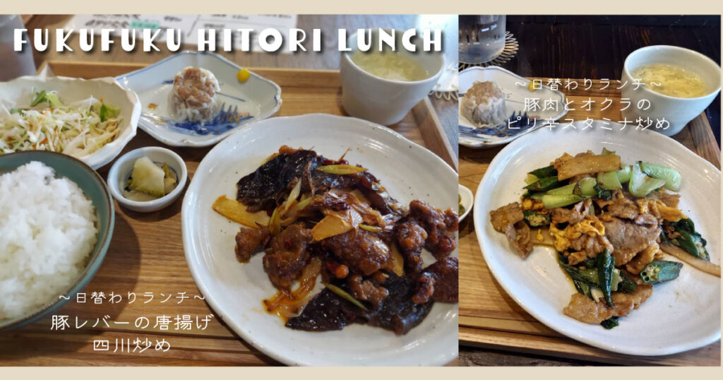 ~8/3 Sunの投稿の福福ひとりランチ*『豚肉とオクラのピリ辛スタミナ炒め』& 先週木曜日の福福ひとりランチ『豚レバーの唐揚げ四川炒め』~
