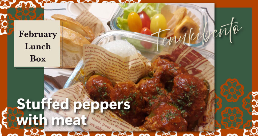 *2/13 Thu『ピーマンの肉詰め弁当』・・・今回のお弁当の中でも一番豪華に見える一品!…なのですが、本当は2/12 ㈬ に食べる予定で持参していましたが、急きょバレンタインランチ(2/16の投稿で紹介)に呼ばれ、泣く泣く会社の冷蔵庫へUターン…